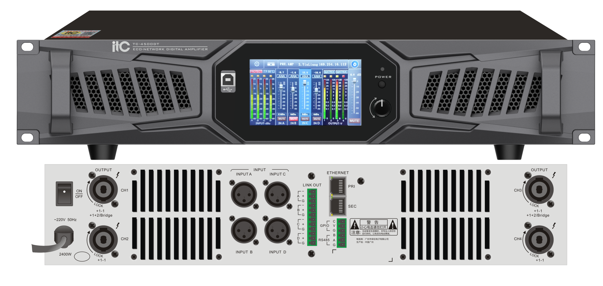 Усилитель ITC-4500  4-х канальный усилитель 4х500W / 8 Ом, 4х800W / 4 Ом